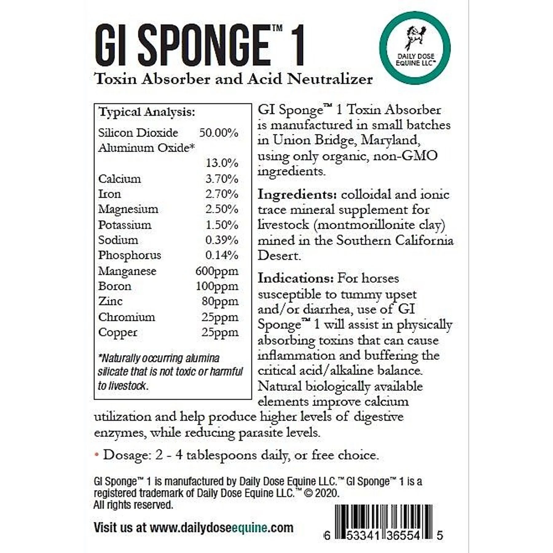 Daily Dose Equine GI Sponge 1 Toxin Absorber & Acid Neutralizer Powder Horse Supplement, 6-lb Bucket