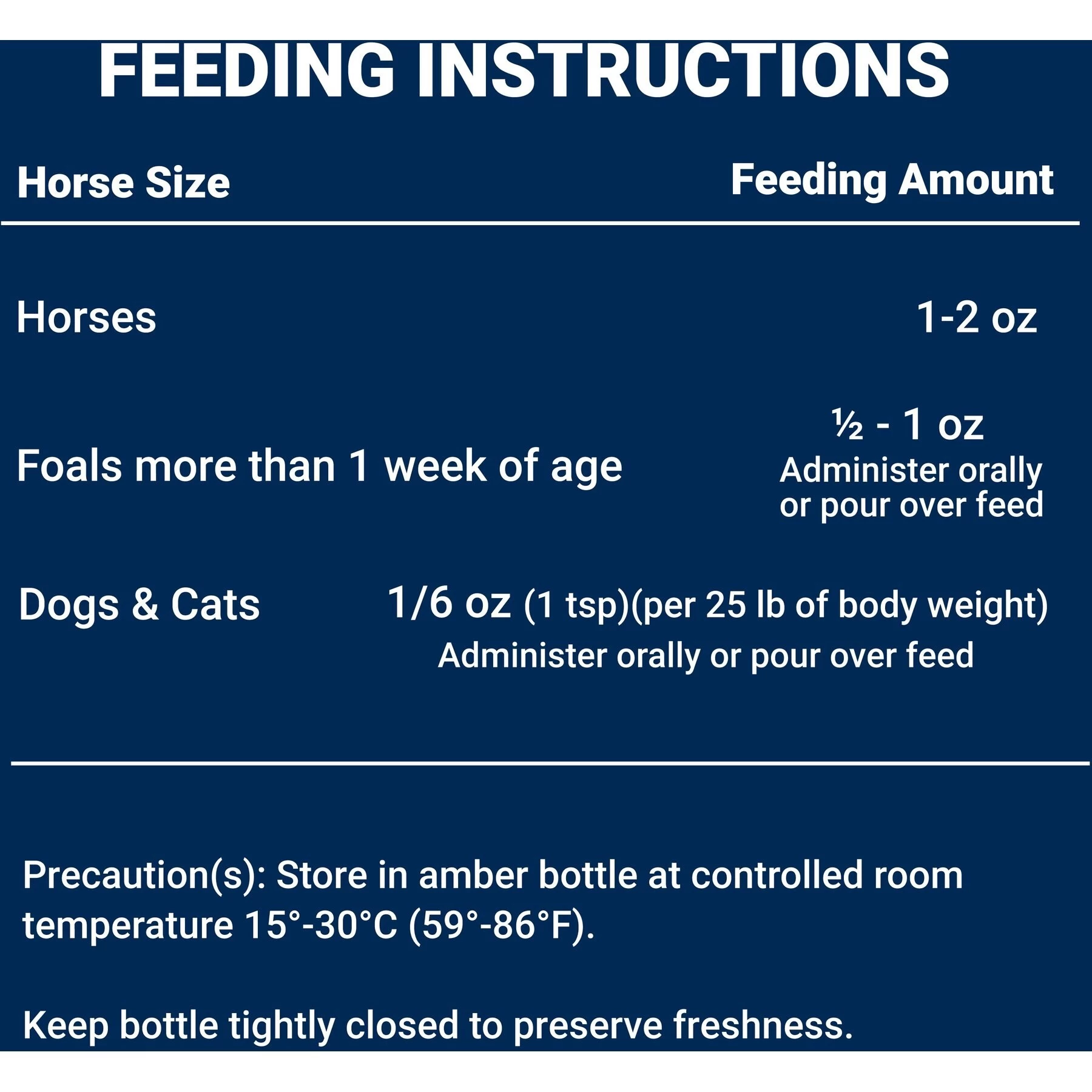 - Highly palatable liquid can be administered orally or poured over feed.