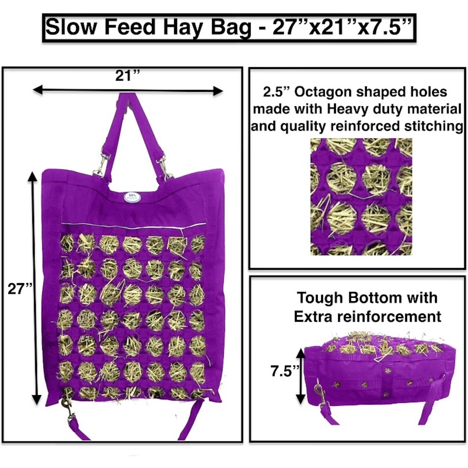 - Small octagon holes let your horse eat comfortably while preventing gulping and reducing mess and waste.