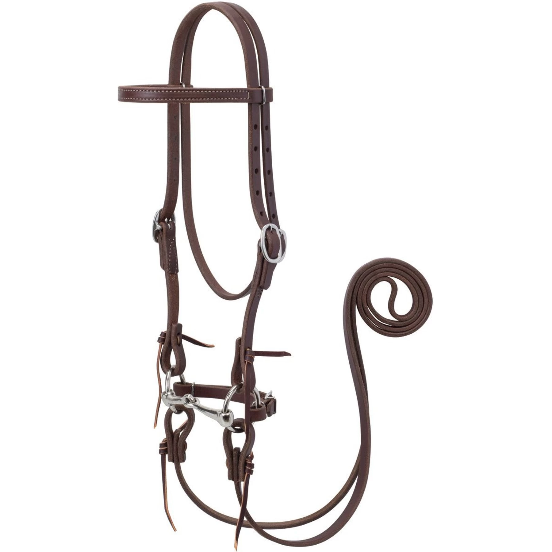 - Includes 5/8 inch x 7-foot roper reins with ties.